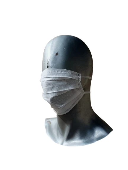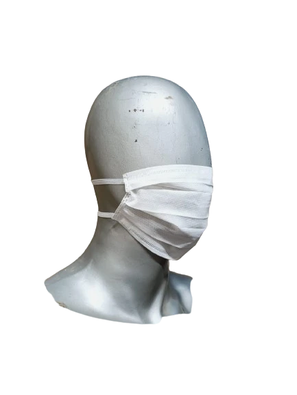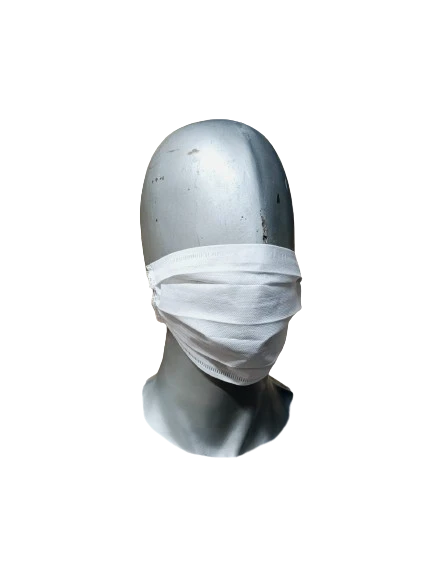 Barbijo tricapa con elastico, sin ajuste nasal.